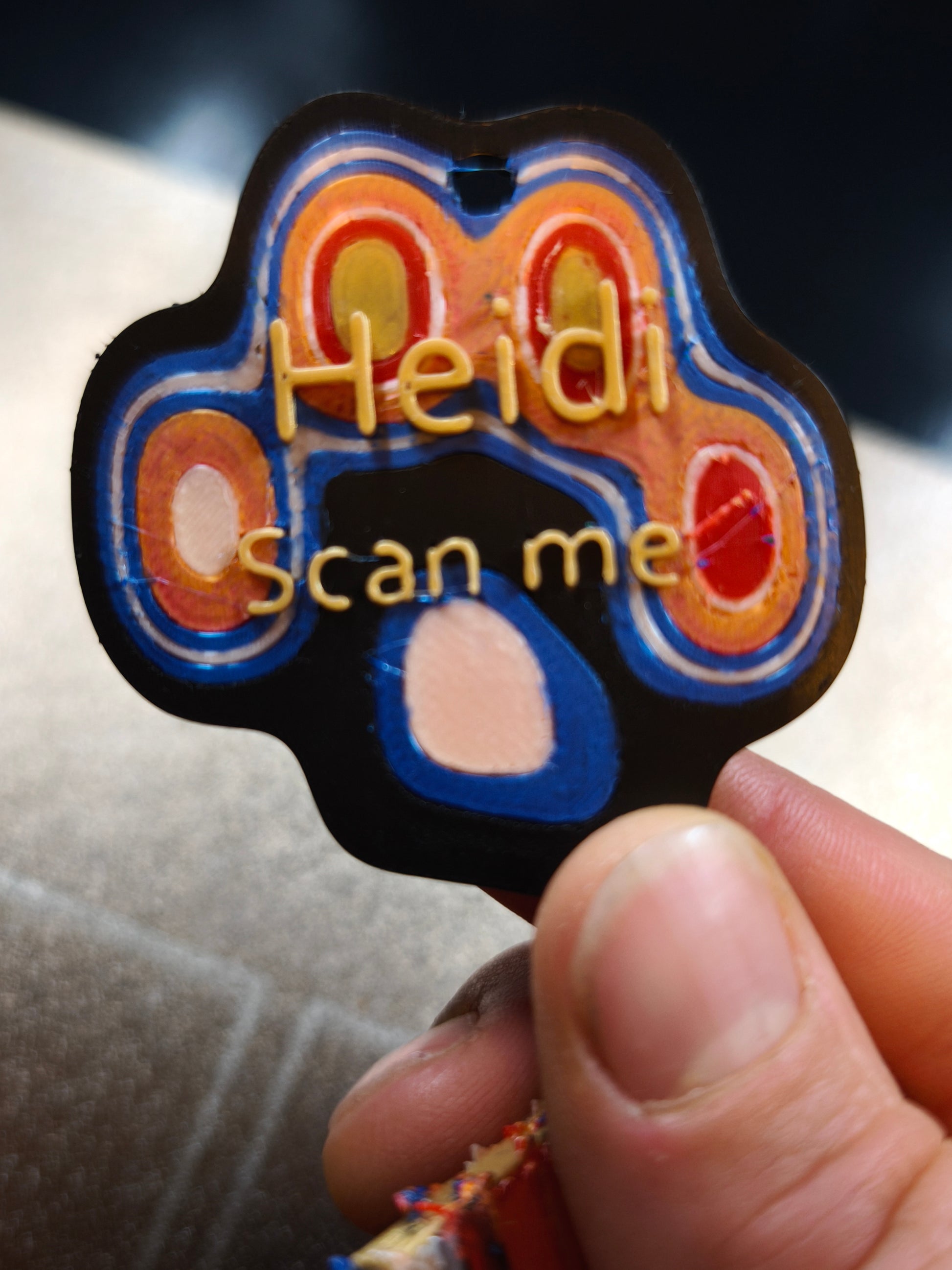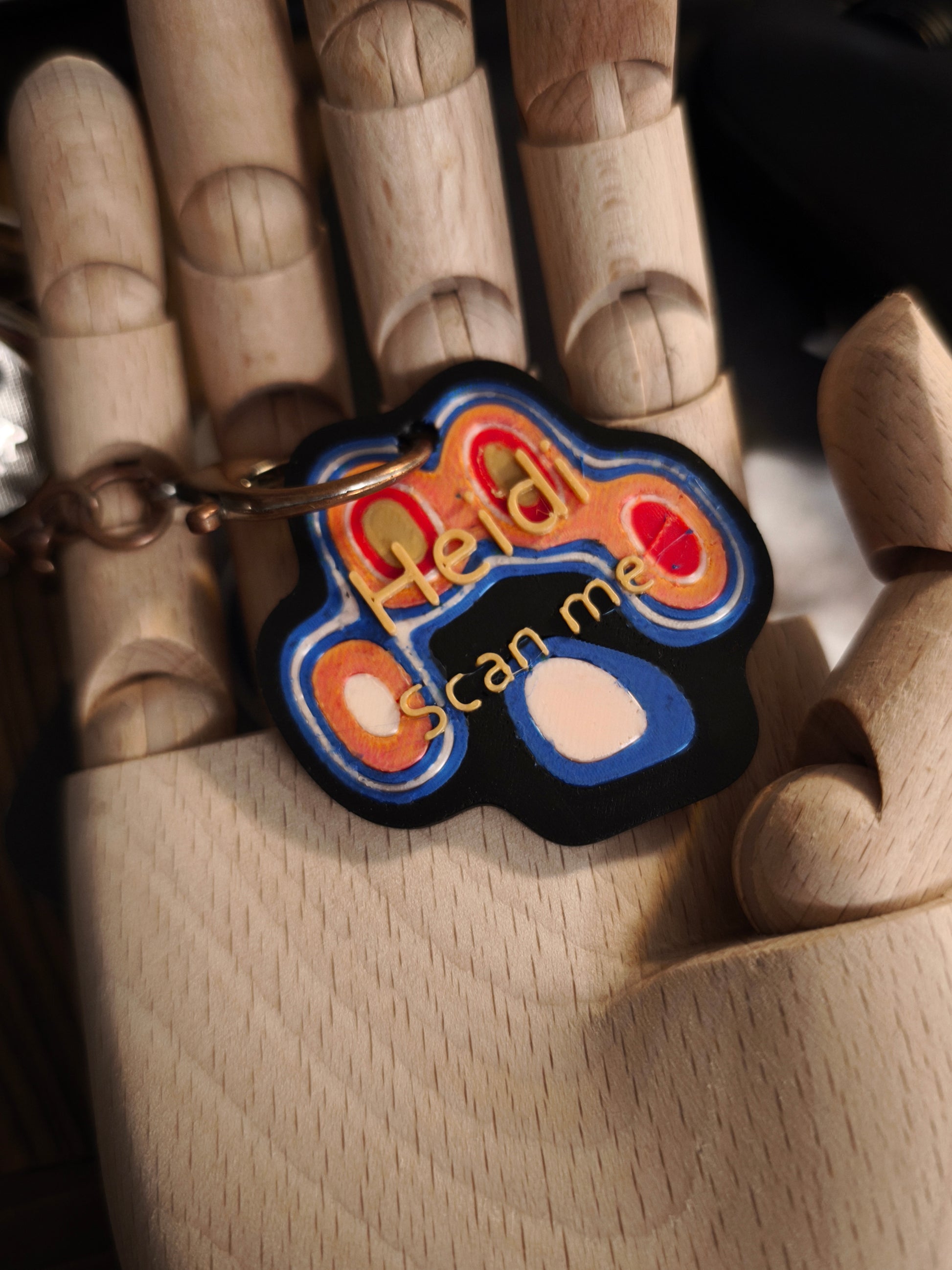 Sicherheit, die man scannen kann. Im Inneren dieses robusten 3D-Drucks verbirgt sich ein NFC-Chip. Kein Akku, kein Abo, keine Strahlung. Findet jemand deinen Hund, muss er nur sein Smartphone an die Pfote halten ("Scan me") und erhält sofort: