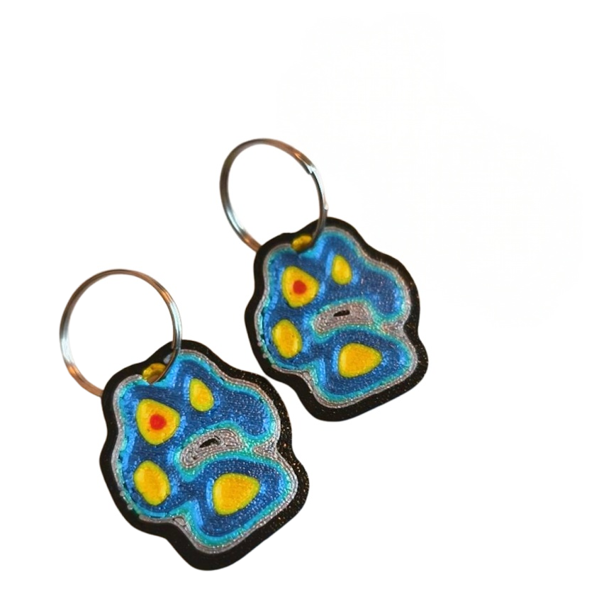 Die bunten, topografischen Linien auf dem Anhänger sind keine Zufallsmuster – sie visualisieren, wie die Pfote deiner Hunderasse den Boden berührt. Wissenschaft trifft auf Design.